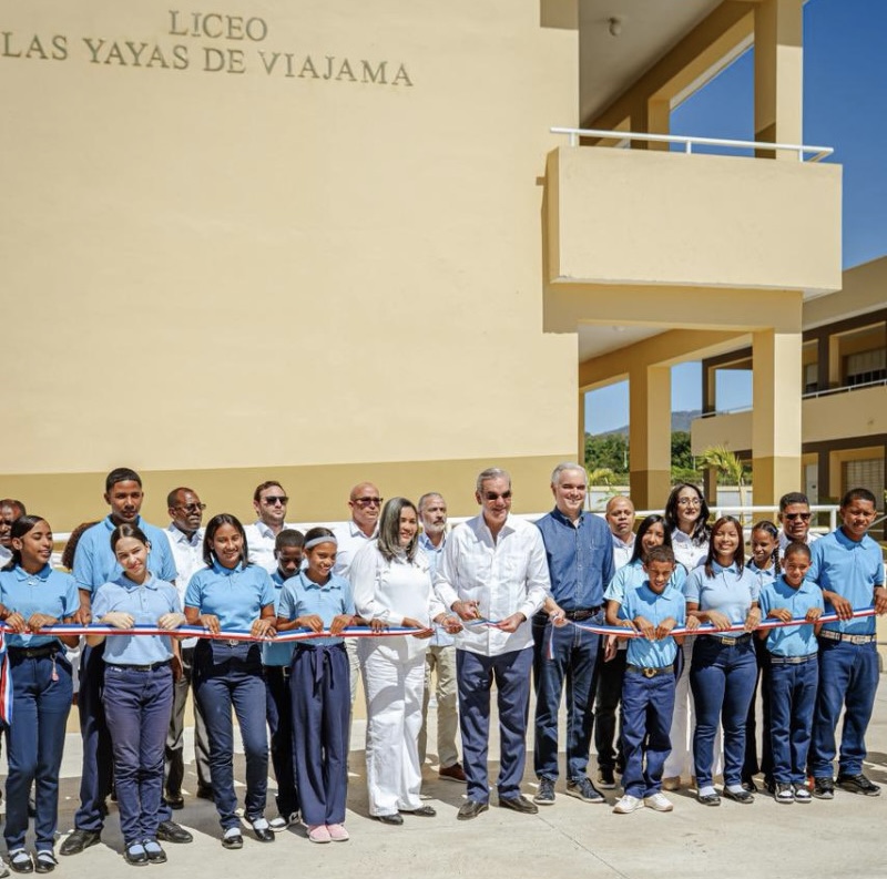 El mandatario encabezó además la inauguración del Liceo Juan Bautista Díaz Marte y el Centro Educativo Dominicana Pérez Estepan de Martínez, una obra que beneficiará a más de 1,800 estudiantes del municipio Pueblo Viejo y del distrito municipal Las Clavellinas.