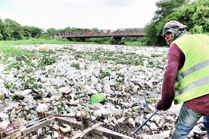 Alertan sobre contaminación por gran acumulación de desechos plásticos en el río Yaque del Norte