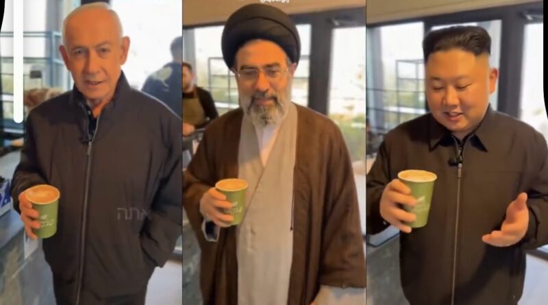 En una pequeña terraza de Jerusalén, en el Sataf Café, tres figuras que representan algunos de los mayores puntos de tensión del planeta aparecen tomando un café en el mismo lugar a la misma hora, tranquilos, compartiendo café: Benjamin Netanyahu, Mojtaba Khamenei y Kim Jong-un.