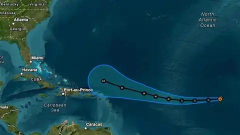 Según la trayectoria pronosticada, se espera que durante el fin de semana el centro del huracán Erin se mueva justo al norte de las Islas de Sotavento Septentrionales, las Islas Vírgenes y Puerto Rico.