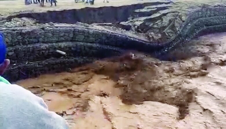 Ayer llovió en la cabecera de la montaña donde nace el río Tireo y, como resultado de la crecida de su cauce, los gaviones construidos por Instituto Nacional de Recursos Hidráulicos (INDRHI) hace poco tiempo, colapsaron por completo, erosionando sus márgenes.