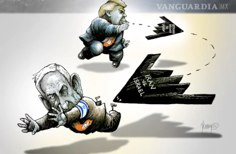 Ilustración: «Los juguetes» (Después de que Trump bombardera instalaciones nucleares en Iran, éste respondió con una oleada de misiles contra Israel y bases militares de Estados Unidos en Qatar) de Monsi para Vanguardia, México