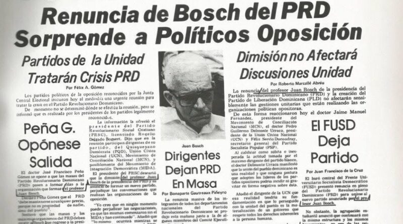 El 18 de noviembre de 1973 se produjo la renuncia del Profesor Juan Bosch de la Presidencia y membresía del Partido Revolucionario Dominicano, acompañado de un pequeño grupo de dirigentes con los cuales fundó el Partido de la Liberación Dominicana en el mes de diciembre siguiente.