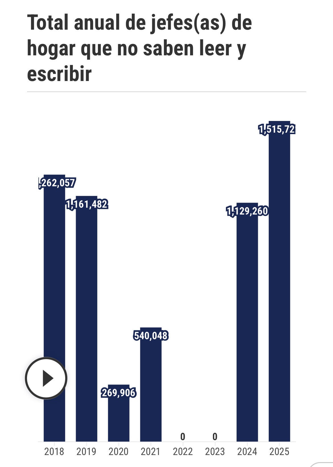 Los registros del Siuben publicados en el portal Datos Abiertos del Gobierno dominicano, instrumento principal del Estado para la focalización de la inversión social, indican que la tasa de analfabetismo entre los jefes y jefas de hogar registrados no ha descendido en los últimos siete años. Por el contrario, la proporción de esta población que declara no saber leer ni escribir pasó de un 12.51 % en 2018 a un 13.19 % proyectado para 2025.