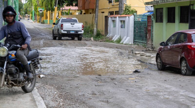 Calle en construcción dejada a medias, polvo, enfermedades respiratorias, accidentes, baja en las ventas de los negocios, parque abandonado y calles con charcos son parte de los problemas que día a día tienen que enfrentan residentes en El Tamarindo, Los Rosales y Hainamosa en Santo Domingo Este.