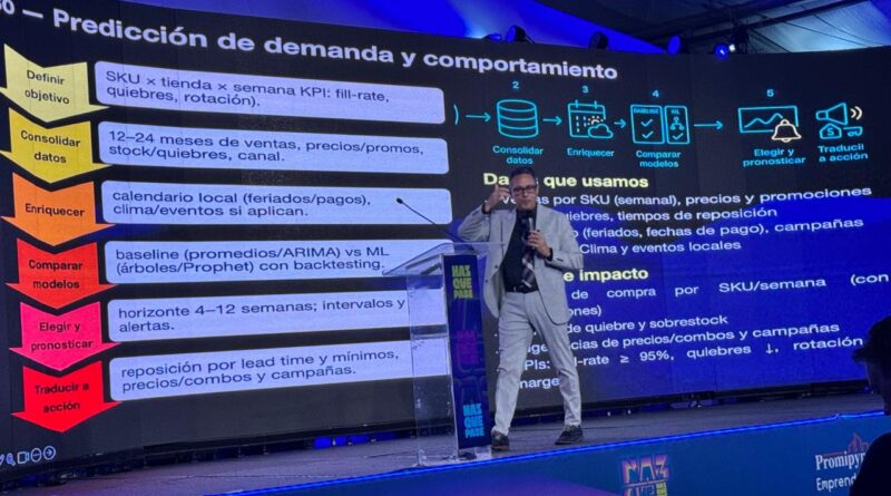 El experto en Inteligencia Artificial, José Cid, cautivó a cientos de estudiantes en el segundo día de la feria EmprendeLab 2025, del Consejo Nacional de Promoción y Apoyo a la Micro, Pequeña y Mediana Empresa (Promipyme), al destacar la importancia de los datos en la era digital y explicar cómo se utilizan para impulsar la innovación y la toma de decisiones.