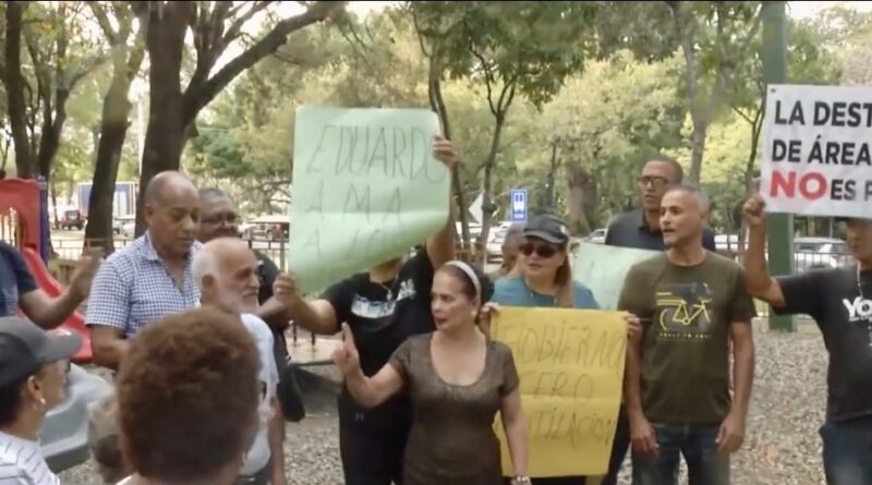 Residentes del sector Los Jardines del Norte protestaron este miércoles en el Parque Crisantemo, en rechazo a la supuesta ampliación de la avenida Los Próceres, en el Distrito Nacional.
