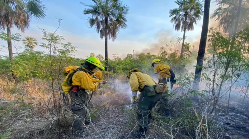 Para colaborar con las labores para extinguir el fuego, una brigada de bomberos forestales del Ejército Paraguayo se trasladó a una región cercana a Bahía Negra.