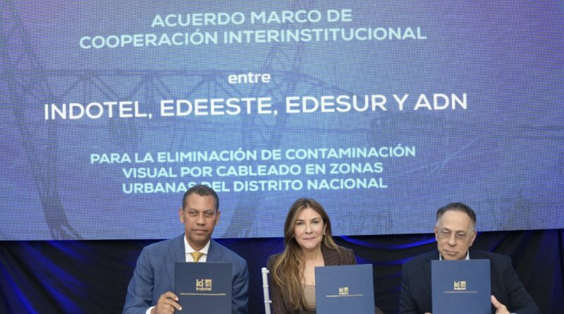 El Instituto Dominicano de las Telecomunicaciones (Indotel), la Alcaldía del Distrito Nacional (ADN) y el Consejo Unificado de las Empresas Distribuidoras de Electricidad (CUED) firmaron un acuerdo de cooperación para avanzar en el retiro del cableado aéreo en desuso y obsoleto, así como en el ordenamiento de las infraestructuras que afectan la imagen urbana y la seguridad de la ciudadanía.