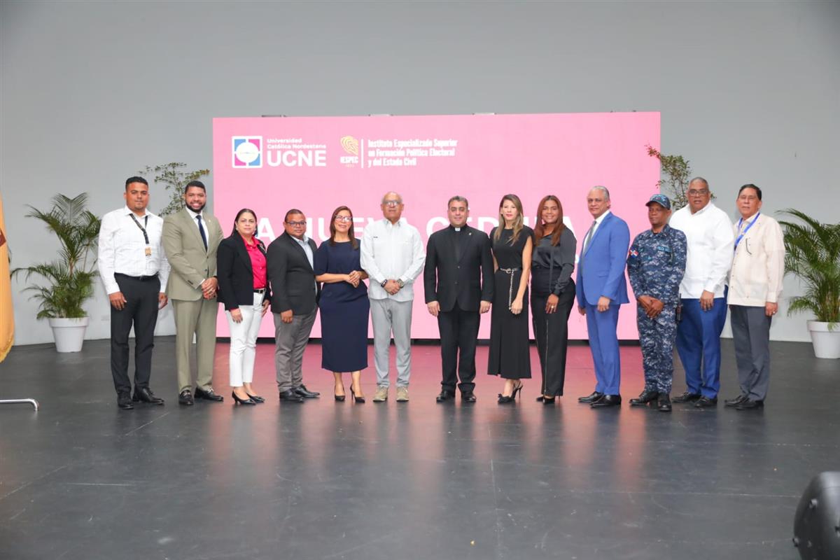 La actividad contó con la presencia de los miembros suplentes del Pleno de la JCE: Cristian Perdomo Hernández, Anibelca Rosario Rosario, María Estela de León Veloz y Tony Tejada; Américo Rodríguez, Director Nacional de Cedulación y el Reverendo Padre Isaac García, Rector de la UCNE.