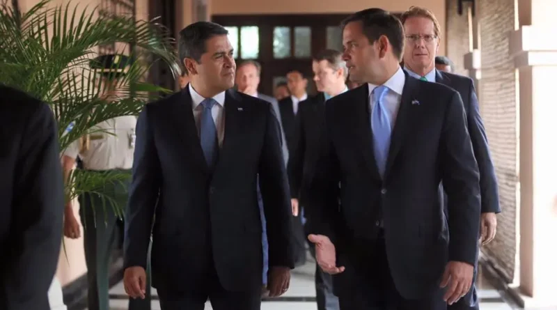 El actual jefe de la diplomacia estadounidense era un asiduo visitante del narcotraficante cuando este ejercía su segundo mandato, obtenido de manera fraudulenta pero con el aval de la Organización de Estados Americanos (OEA), por entonces en manos de Luis Almagro. Durante una de sus visitas, Rubio felicitaba la «lucha contra las drogas» que libraba el gobierno de Hernández, mientras su hermano, Juan Antonio, enviaba toneladas de drogas a Estados Unidos. La lucha que Rubio celebraba permitió 14 años de contrabando de cocaína hacia el país que acogió a su familia cubana.