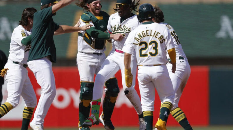 Shea Langeliers abrió la novena con un doble ante Chapman (4-3), quien no había permitido un hit desde el 23 de julio, un lapso de 50 bateadores y un récord de franquicia de 17 apariciones, la tercera racha más larga en la historia de la MLB desde 1901. Langeliers avanzó con un elevado y anotó con el sencillo de Butler al jardín izquierdo.