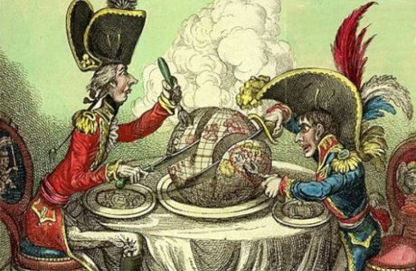 Ilustración: Caricatura política de 1805 sobre el reparto del mundo por parte de William Pitt y Napoleón de James Gillray.