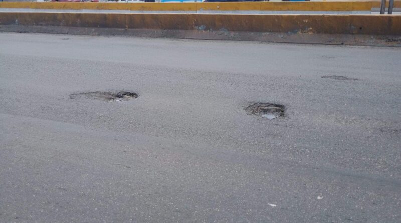Grandes orificios hay en Las Américas próximo al «Farolito» en dirección este-oeste donde se forma un charco que destruye el pavimento.