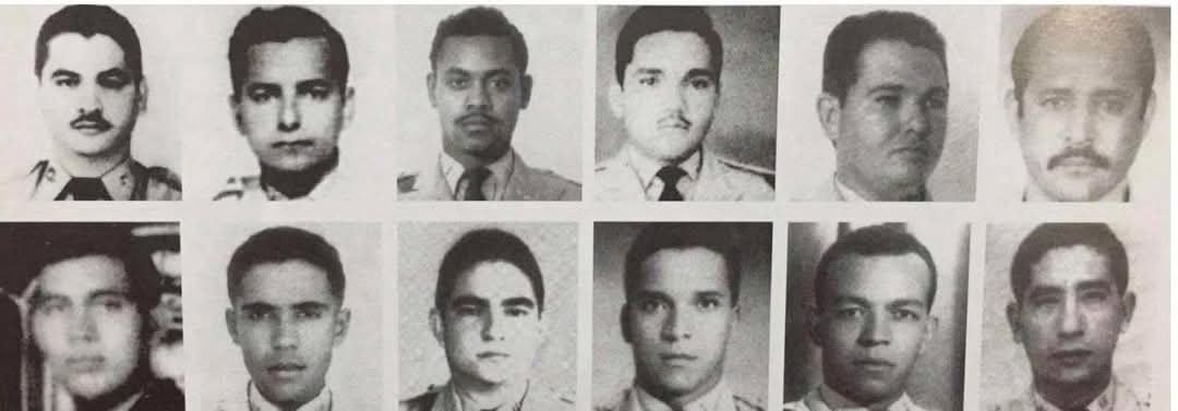Son estos oficiales, en el mismo orden de la foto, el Teniente Coronel Rafael Tomás Fernández Domínguez EN, capitán Fernando Rafael Cabrera Ortega FAD, primer teniente Lorenzo Sensión Silverio, FAD, capitán Rafael Armando Quiroz Pérez FAD, Mayor Roberto Antonio Cabrera Luna FAD, primer teniente Geraldo A. Brito y Brito FAD, primer teniente Marino Antonio Almanzar García FAD, primer teniente Antonio González y González FAD, capitán Héctor Enrique Lachapelle Díaz FAD, primer teniente José René Jiménez German FAD y el primer teniente Freddy Piantini Colón FAD.