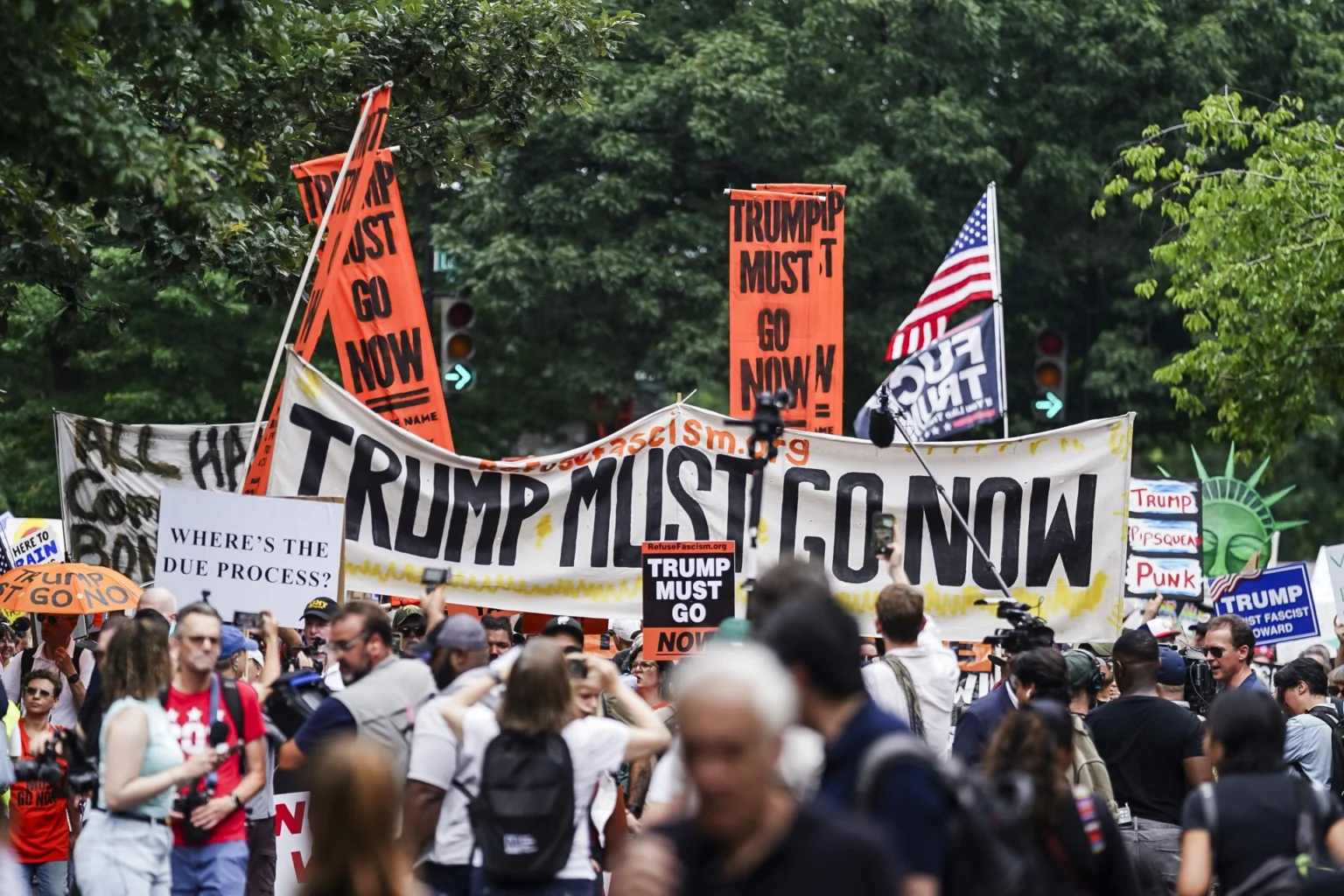 La Quinta Avenida de Manhattan fue testigo de una imponente marcha donde aproximadamente 25.000 personas desfilaron bajo la lluvia, según cifras policiales. Entre los manifestantes destacó la presencia de la actriz y activista Susan Sarandon y del actor Mark Ruffalo,quien expresó su preocupación por el estado de la democracia estadounidense.