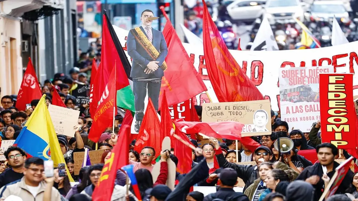 Las movilizaciones de este 12 de octubre coinciden con el día 21 del paro nacional convocado por la Confederación de Nacionalidades Indígenas del Ecuador (Conaie) luego de que el Gobierno de Daniel Noboa eliminó el subsidio al diésel.