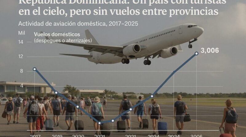 Para entender la dimensión del problema basta un ejemplo: un turista puede llegar sin dificultad desde Europa hasta La Altagracia, pero no existe un vuelo regular que lo lleve de Punta Cana a Puerto Plata o a Pedernales. El país que conecta con el mundo por aire no se interconecta consigo mismo.