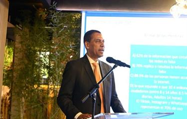 Durante un encuentro con comunicadores de Santiago, señaló que más de 10.4 millones de dominicanos reciben a diario datos manipulados, principalmente a través de TikTok, Instagram y WhatsApp, que concentran el 70 % del tráfico informativo.