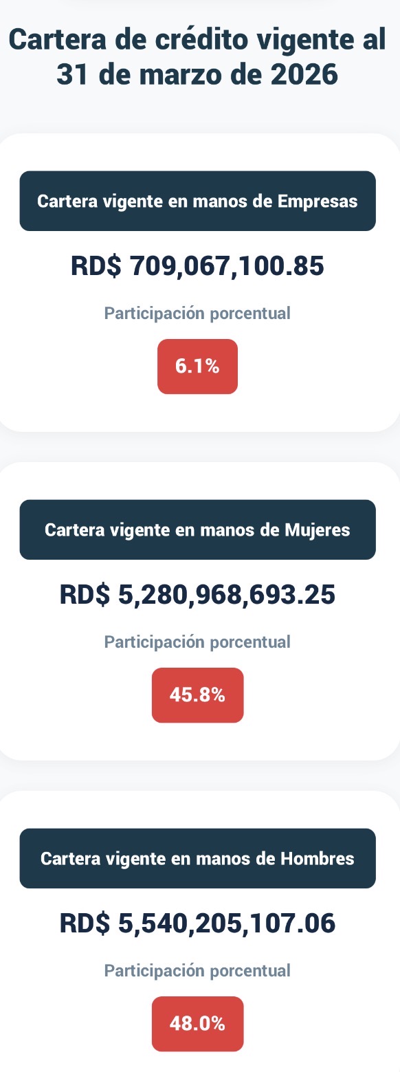 El funcionario indicó que la institución ha colocado más de RD$16,600 millones en los últimos dos años, beneficiando a miles de microempresarios y fortaleciendo el ecosistema productivo nacional. Además informó que la institución mantiene una cartera activa de RD$11,352 millones, según el último corte al 31 del mes pasado. Destacó además la implementación de políticas de inclusión financiera con enfoque de género: el 64% de los clientes de Promipyme son mujeres, quienes representan el 46% de la cartera total.