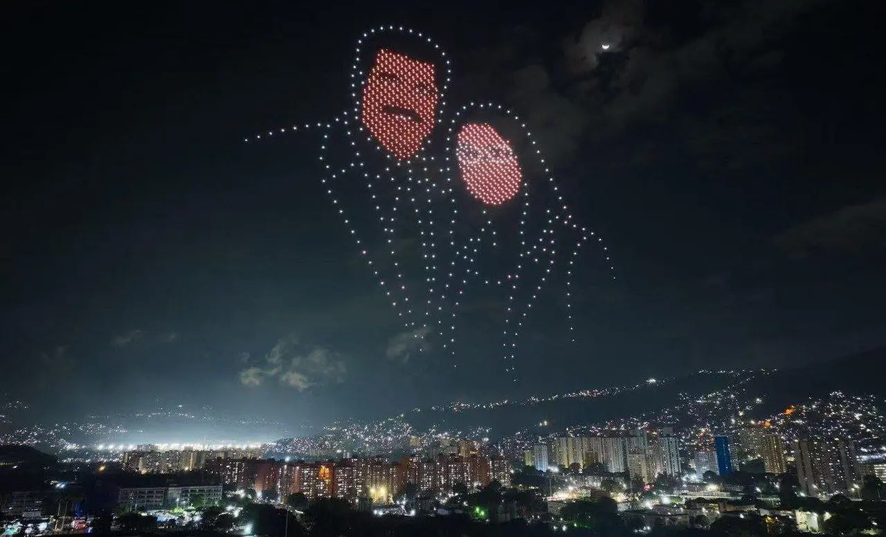 En Caracas, Venezuela, se realizó este viernes un espectáculo con drones para apoyar al presidente Nicolás Maduro y a la primera combatiente, Cilia Flores, quienes fueron secuestrados por fuerzas armadas estadounidenses tras la invasión militar del pasado 3 de enero al país suramericano.