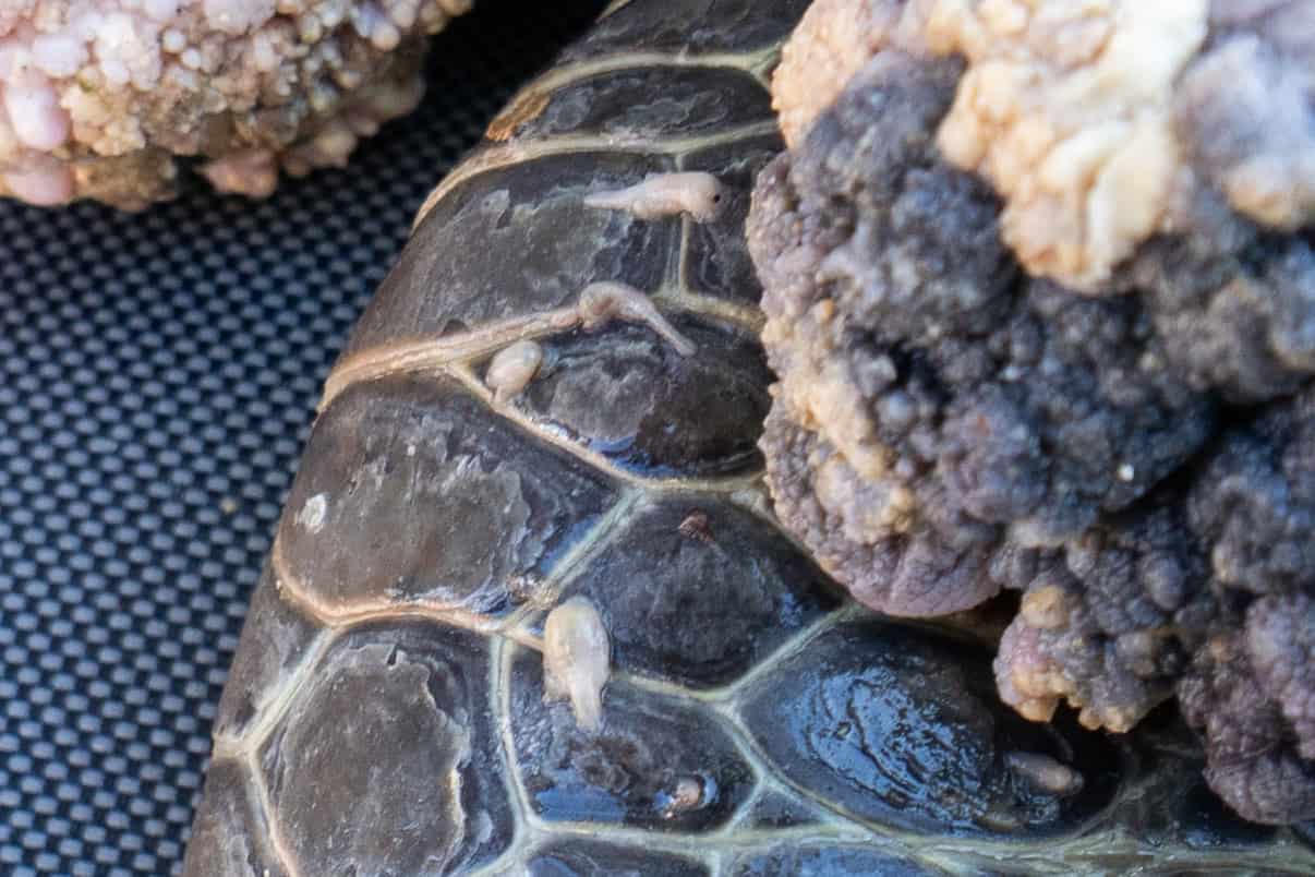 Es en ese proceso donde, según investigaciones realizadas en Hawái y Florida, podrían transmitir de manera mecánica el virus asociado a la fibropapilomatosis. Se ha comprobado que estas sanguijuelas portan cargas virales muy altas y, por eso, se las considera vectores potenciales del virus.