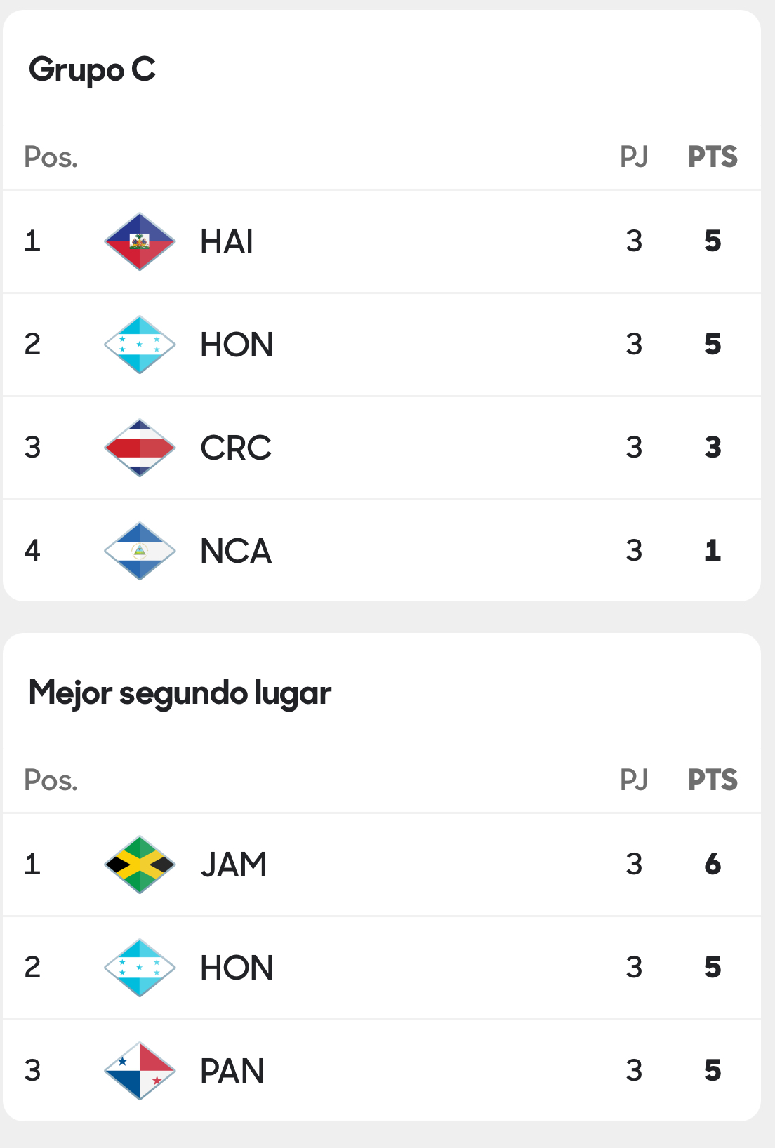 La tabla de clasificaciones de los tres grupos queda de la siguiente manera: