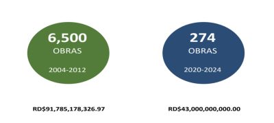 A continuación, les presentación una tabla comparativa de las obras desarrolladas porel actual gobierno y las construidas por el doctor Leonel Fernández